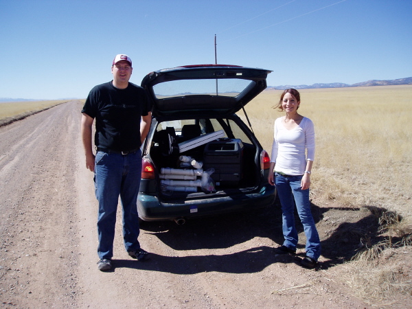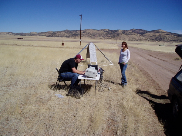 Ted Jaeger, astronomy graduate student at U. Iowa, and Stefanie Gallegos, a Junior at UNM majoring in Physics/Astronomy, participate in the radio-frequency-interference (RFI) testing at potential LWA sites during the spring semester 2007.
