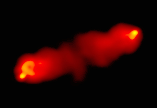 Simulated image of Cygnus A at 74 MHz with the LWA Phase II. The
